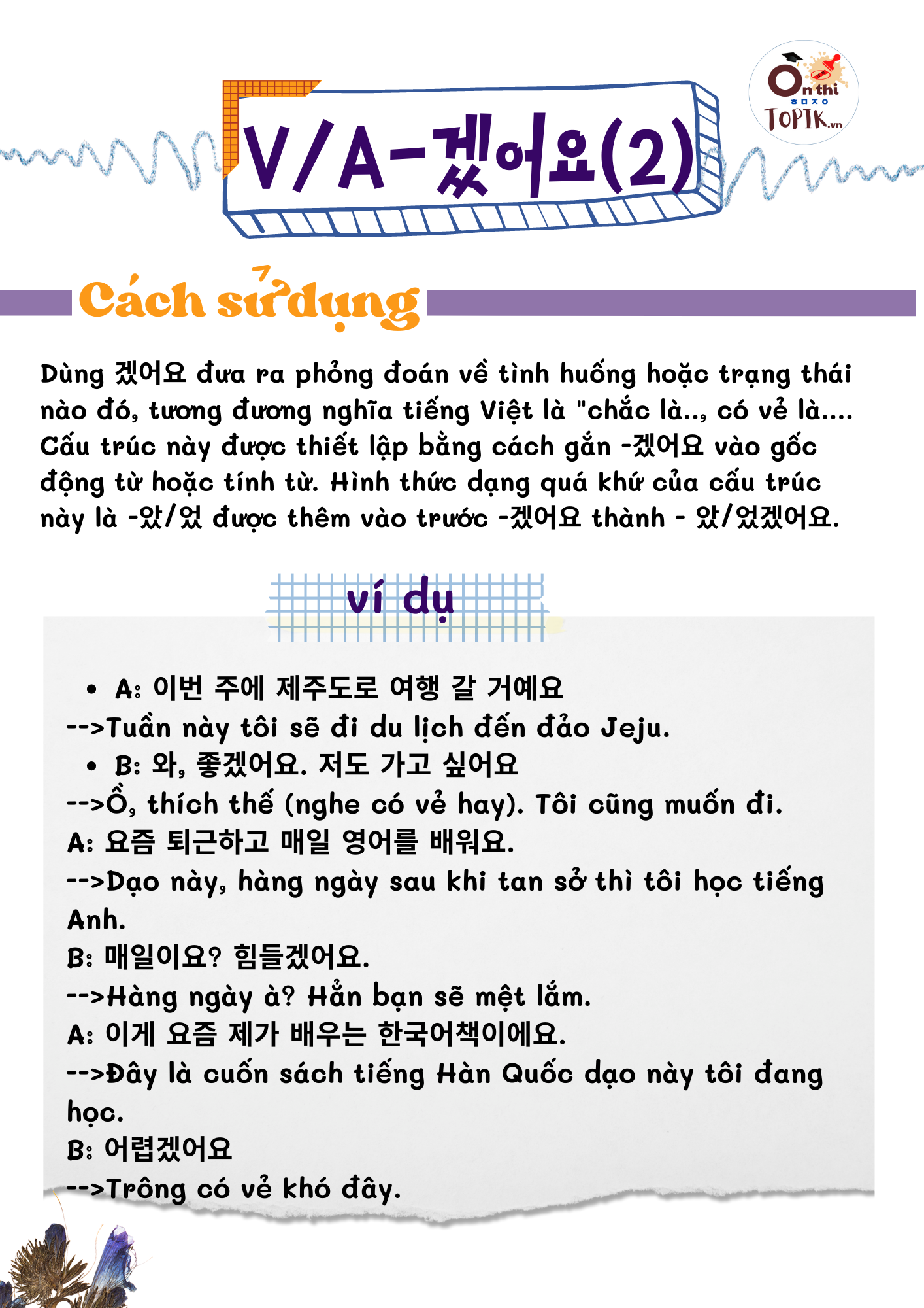 đuôi câu này biểu hiện sự dự đoán, một dự định, hoặc một sự thật chưa được xác định chính xác. ... Đuôi câu (으)ㄹ 거예요 có nghĩa: chắc là, chắc, có lẽ là, có thể là, sẽ.